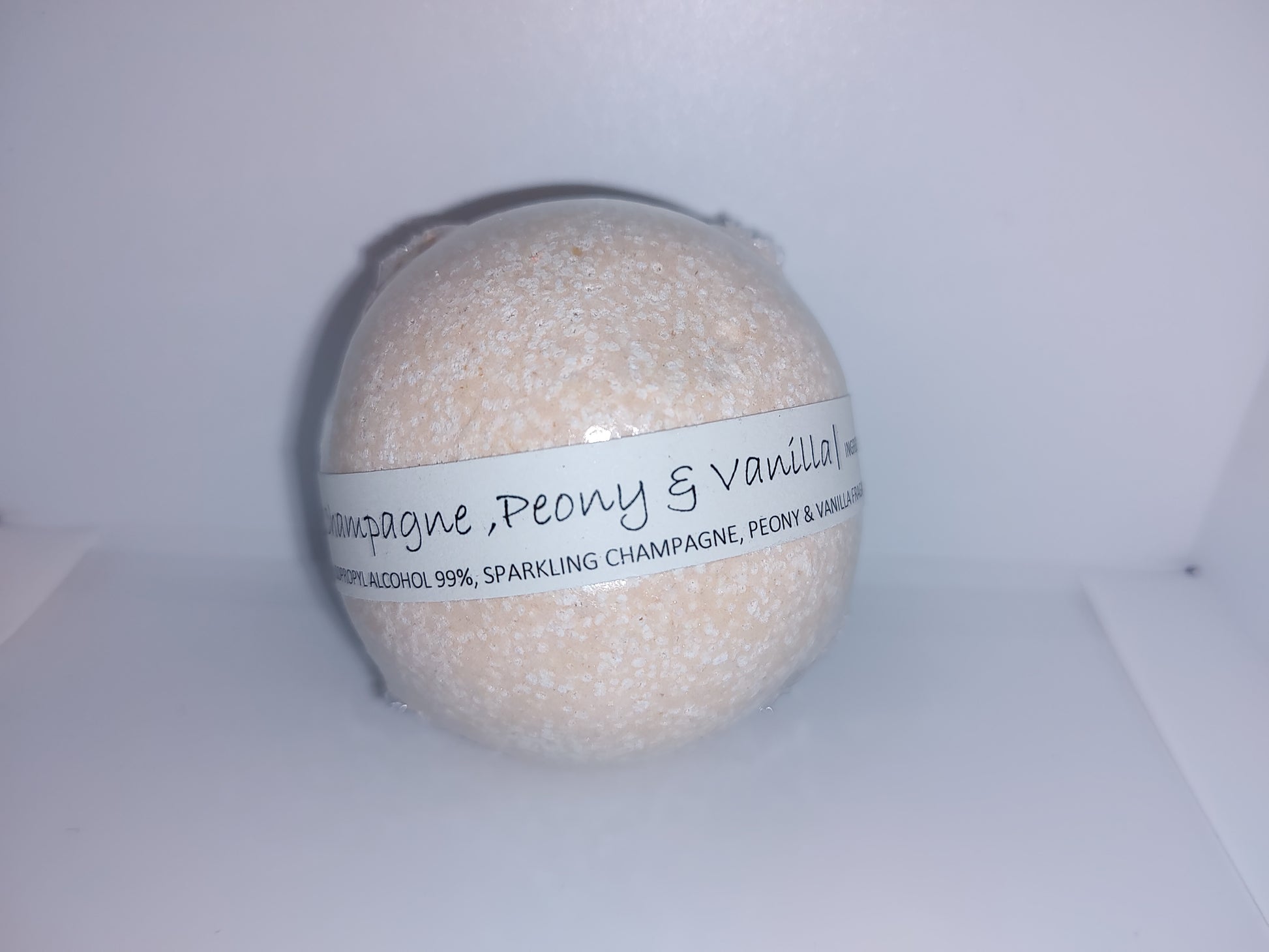Foamy bath bomb will help you relax and soothe your skin with kaolin clay and hempseed oil. Reinvigorating lush baths. Peony and vanilla scent.